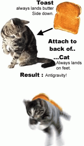ഉള്ളടക്കത്തിന്റെ വിവരണം: a cat is sitting next to a slice of toast that says " attach to back of "