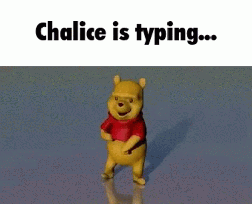 ഉള്ളടക്കത്തിന്റെ വിവരണം: a cartoon of winnie the pooh is dancing and says chalice is typing .