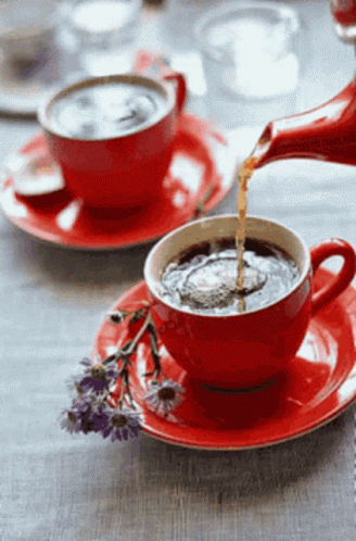 ഉള്ളടക്കത്തിന്റെ വിവരണം: a cup of coffee is being poured from a teapot into a cup on a saucer