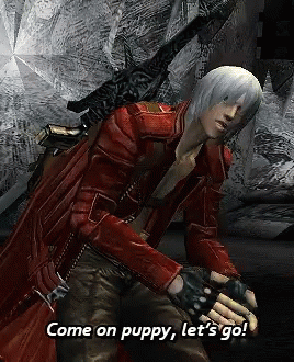 ഉള്ളടക്കത്തിന്റെ വിവരണം: a video game character says come on puppy let 's go while holding a sword