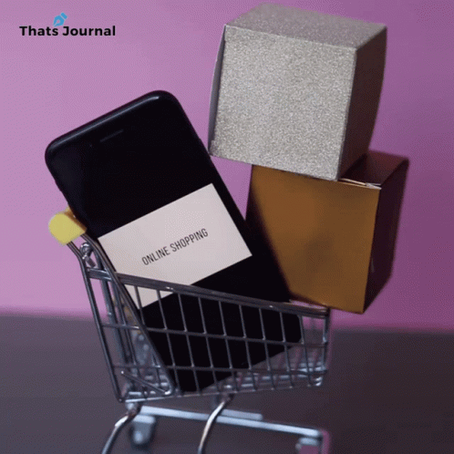 ഉള്ളടക്കത്തിന്റെ വിവരണം: a shopping cart with boxes and a phone that says online shopping on it