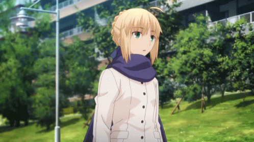 ഉള്ളടക്കത്തിന്റെ വിവരണം: a blonde haired anime girl wearing a white jacket and a blue scarf