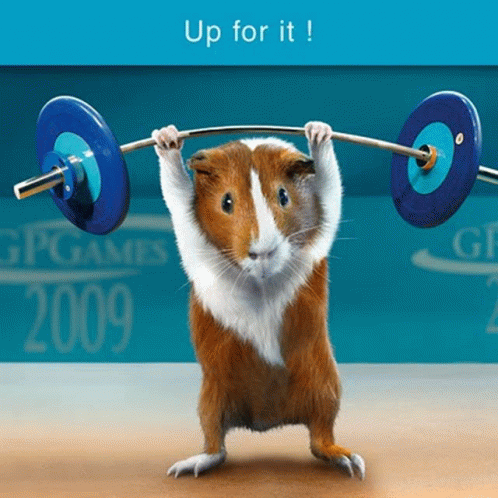 ഉള്ളടക്കത്തിന്റെ വിവരണം: a guinea pig is lifting a barbell in front of a sign that says gp games 2009