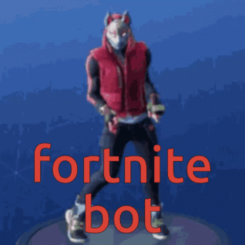 ഉള്ളടക്കത്തിന്റെ വിവരണം: a man in a red hoodie is dancing in front of a blue background that says ' fortnite bot '