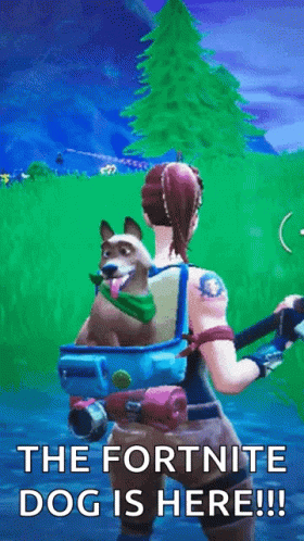 ഉള്ളടക്കത്തിന്റെ വിവരണം: a woman is carrying a dog in a backpack in a video game called fortnite .