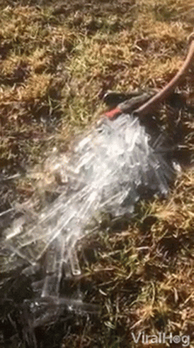 ഉള്ളടക്കത്തിന്റെ വിവരണം: a hose is spraying water on a grassy field
