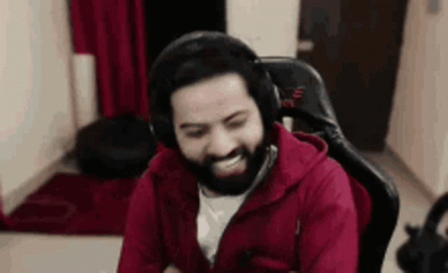 ഉള്ളടക്കത്തിന്റെ വിവരണം: a man with a beard is wearing headphones and a red jacket while sitting in a chair .