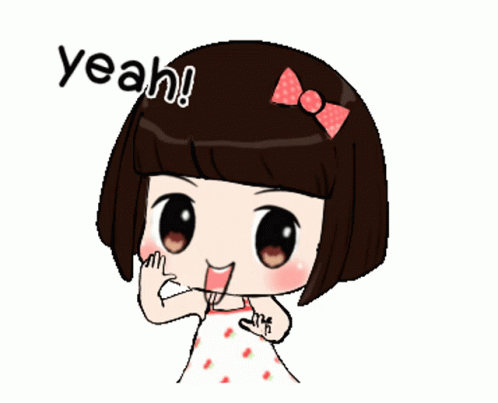 ഉള്ളടക്കത്തിന്റെ വിവരണം: a cartoon girl with short brown hair and a pink bow on her head says yeah