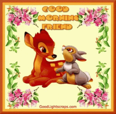 ഉള്ളടക്കത്തിന്റെ വിവരണം: a picture of a deer and a rabbit that says " good morning friend "