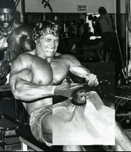 ഉള്ളടക്കത്തിന്റെ വിവരണം: a black and white photo of a man cutting a monkey