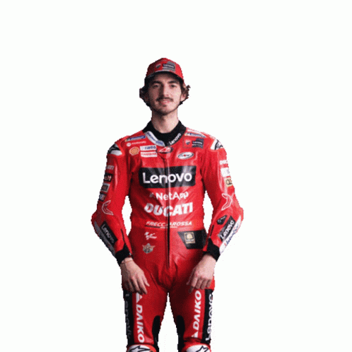 ഉള്ളടക്കത്തിന്റെ വിവരണം: a man wearing a red lenovo ducati racing outfit