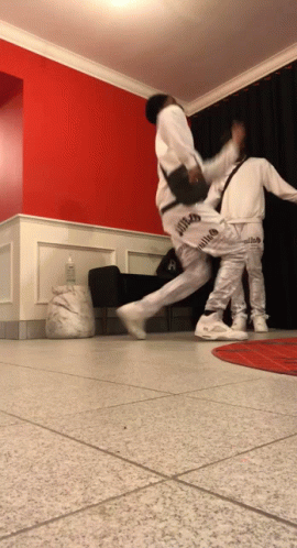 ഉള്ളടക്കത്തിന്റെ വിവരണം: a person wearing white pants with the word illes on them is jumping in the air