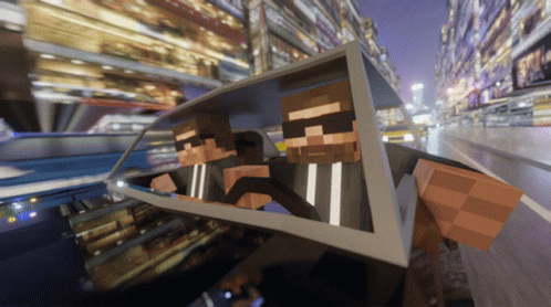 ഉള്ളടക്കത്തിന്റെ വിവരണം: a group of minecraft characters are driving down a street