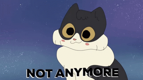 ഉള്ളടക്കത്തിന്റെ വിവരണം: a black and white cat with the words " not anymore " on the bottom