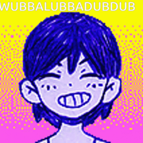 ഉള്ളടക്കത്തിന്റെ വിവരണം: a pixel art drawing of a boy with blue hair and the words wubbalubbaddubdub below it