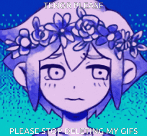 - ഉള്ളടക്കത്തിന്റെ വിവരണം: a drawing of a girl with a flower crown on her head with the words tenor please please stop deleting my gifs