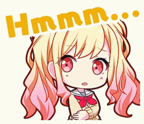 ഉള്ളടക്കത്തിന്റെ വിവരണം: a cartoon of a girl with pink hair and the word hmm written above her