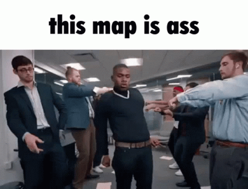 ഉള്ളടക്കത്തിന്റെ വിവരണം: a group of men are dancing in a room with the caption " this map is ass "