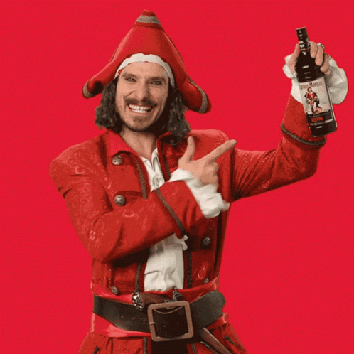 ഉള്ളടക്കത്തിന്റെ വിവരണം: a man in a pirate costume holds a bottle of rum