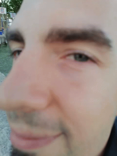 ഉള്ളടക്കത്തിന്റെ വിവരണം: a close up of a man 's face with a blurry background and a sign that says ' a ' on it