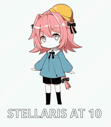 - ഉള്ളടക്കത്തിന്റെ വിവരണം: a cartoon of a girl with pink hair wearing a hard hat and the words stellaris at 10 below her