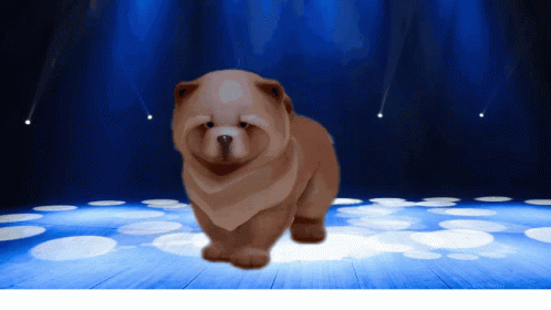 आशयाचे वर्णन: a small brown dog is walking on a stage with blue lights behind it