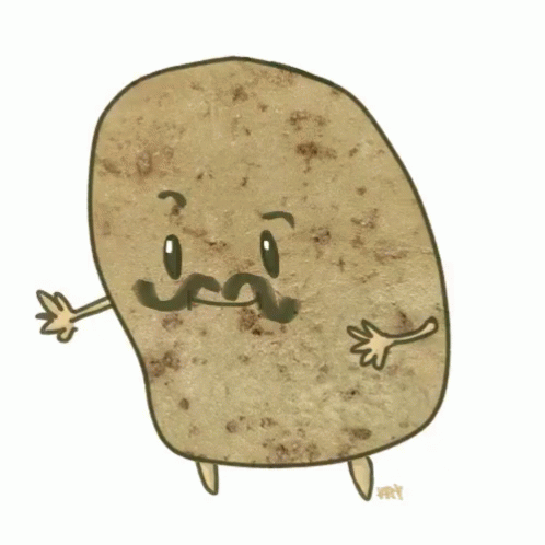 आशयाचे वर्णन: a cartoon drawing of a potato with a mustache and hands