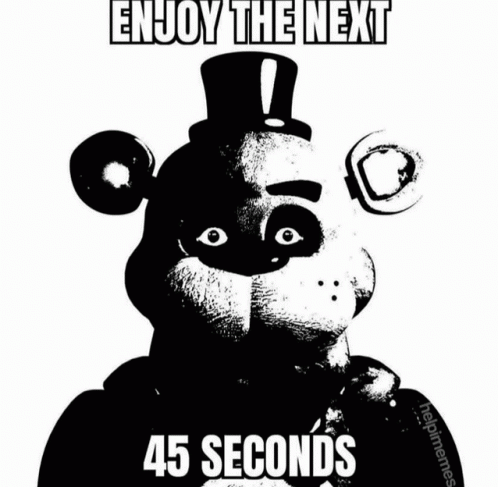 Perihalan Kandungan: a black and white drawing of freddy from five nights at freddy 's with the caption enjoy the next 45 seconds
