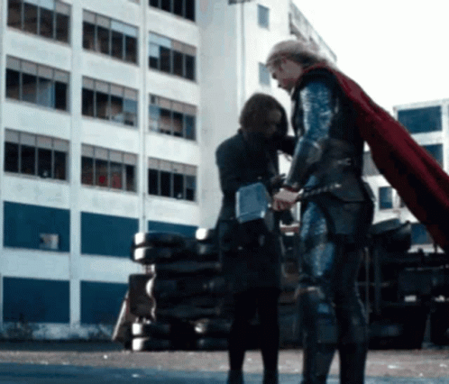 Perihalan Kandungan: a man in a cape holds a hammer next to a woman
