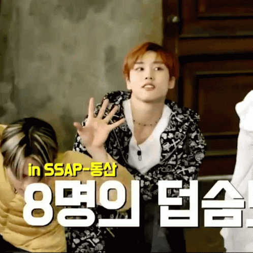 Perihalan Kandungan: a man in a black and white jacket is standing in front of a sign that says in ssap-dongsan