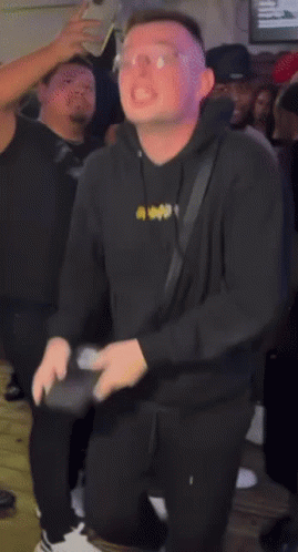 Perihalan Kandungan: a man wearing a black hoodie with the word apollo on it is dancing in a crowd