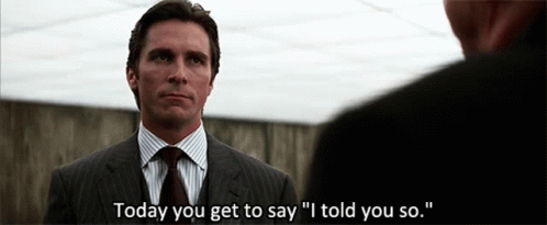 Perihalan Kandungan: a man in a suit and tie says today you get to say i told you so