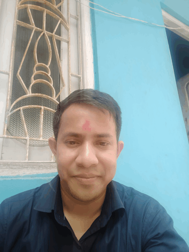 Perihalan Kandungan: a man with a red circle on his forehead poses for a picture