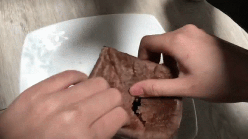 Perihalan Kandungan: a person is holding a piece of chocolate cake on a white plate .