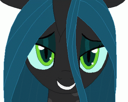 Perihalan Kandungan: a pixel art drawing of a pony with blue hair and green eyes