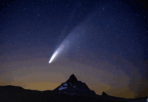 Perihalan Kandungan: a comet is flying through a starry night sky over a mountain
