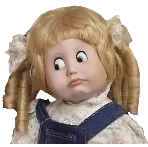 Perihalan Kandungan: a doll with blonde hair is wearing overalls and a white shirt