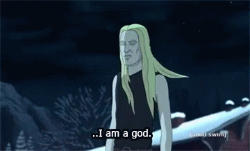 Perihalan Kandungan: a cartoon of a man holding a guitar and saying " i am a god "