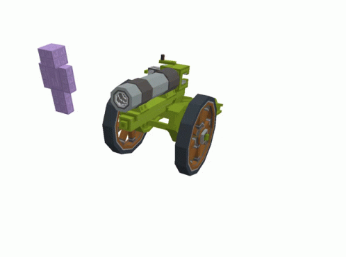Perihalan Kandungan: a green cannon with a purple cube in the background