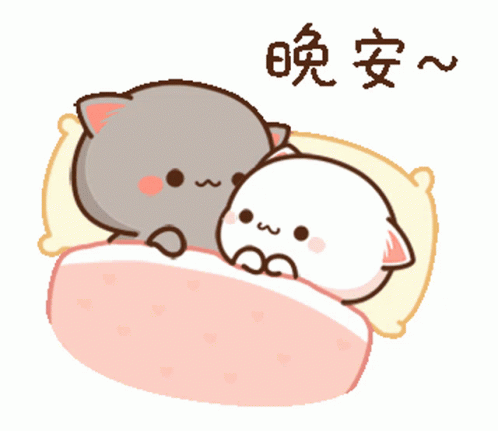 Perihalan Kandungan: a cartoon of two cats laying in bed with chinese writing