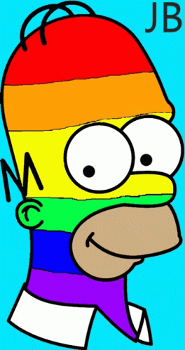 Perihalan Kandungan: a cartoon of homer simpson wearing a rainbow hat with the letter jb below him