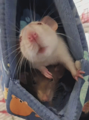 Perihalan Kandungan: two mice are laying in a blue hammock with a hippo on it