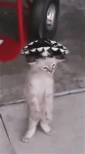 အကြောင်းအရာ ဖော်ပြချက်: a cat wearing sunglasses and a hat standing on its hind legs