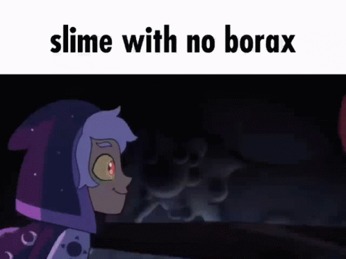 අන්තර්ගත විස්තරය: a cartoon character is standing next to a monster with the words slime with no borax written on the bottom .