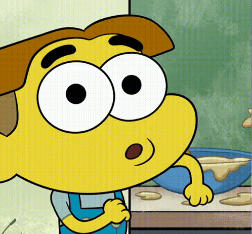 අන්තර්ගත විස්තරය: a close up of a cartoon character 's face with a bowl of food in the background