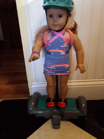 අන්තර්ගත විස්තරය: a doll wearing a helmet is standing on a hover board