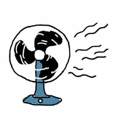 අන්තර්ගත විස්තරය: a cartoon drawing of a fan with waves coming out of it 's blades