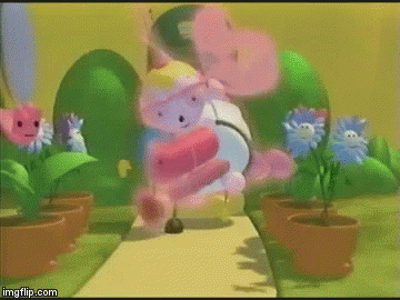 අන්තර්ගත විස්තරය: a purple teddy bear is holding a microphone in a cartoon scene ..