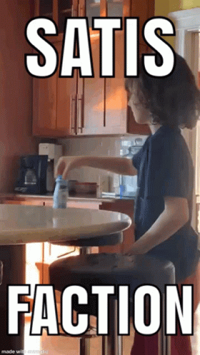 අන්තර්ගත විස්තරය: a person sitting at a table with the words " satisf faction " written on it