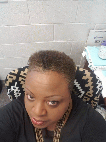 අන්තර්ගත විස්තරය: a woman taking a selfie in front of a box that says " self-sti "